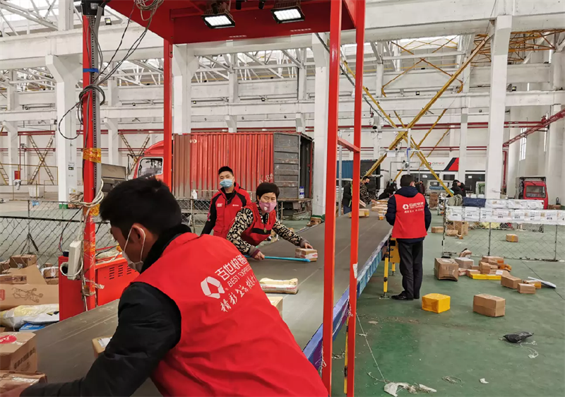无水港公司团支部、经营班子高度重视,立即召开会议安排部署,制定措施。临时规划、调剂出仓库面积约2000㎡,用作申通、天天、天猫等 3家快递企业的人工临时分拣场地。2月16日,申通、天天、天猫超市3家快递企业入驻无水港物流分拨中心,开放临时分拨场所,保障疫情防控期间群众日常生活需要。