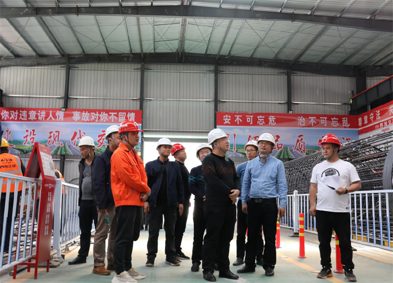 罗伦全一行顺利获得听取介绍、实地查看、座谈研讨的方式,重点就项目部驻地规范化、精细化建设,钢筋加工场、拌合站、隧道洞口等主要施工场地的场地规划、安全设施布置,钢筋加工场和拌合站智能化、标准化作业,隧道工程科学化施工、党建文化生活、劳务管理等进行全面学习研讨。