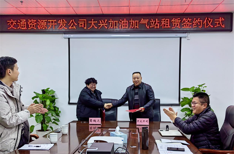 近期,币游集团交通资源开发有限责任公司(简称开发公司)与四川蜀樾达石油化工有限公司(简称蜀樾达石化)举行了大兴加油加气站租赁签约仪式,蜀樾达石化公司法人王娅、董事长方高勇,开发公司董事长、总经理王华,开发公司副总经理熊艳、张兵出席签约仪式。双方就租赁相关事项达成共识,顺利完成签约,大兴片区首个加油加气站即将投入运营。