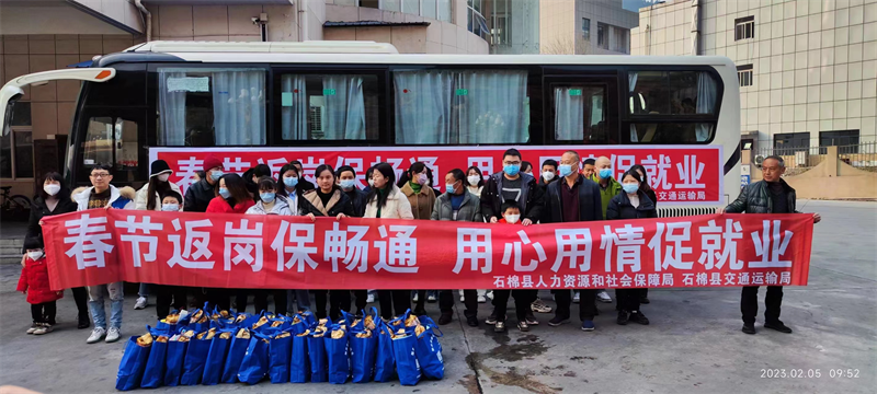 为满足春节后农民工返工返岗需求,交建集团四川蜀通运业有限责任公司会同地方人社、交通运输等部门联合召开2023年农民工返工返岗“春风行动”,“点到点”运送外出务工人员返岗复工。