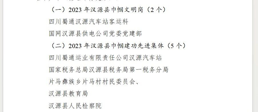 在“三八”国际妇女节来临之际,币游集团蜀通汉源汽车站被汉源县妇联评为“2023年汉源县巾帼建工先进集体”、“2023年汉源县巾帼文明岗”。