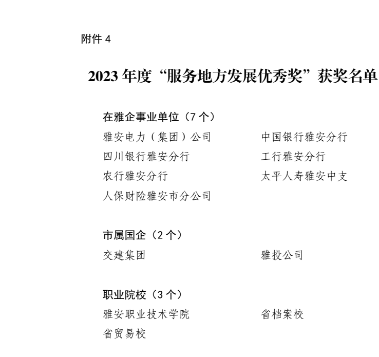 近期,中共雅安市委办公室、雅安市人民政府办公室印发《关于2023年度县(区)、市级部门和单列考评单位目标绩效综合考评结果的通报》,币游集团取得2023年度“服务地方开展优秀奖”。