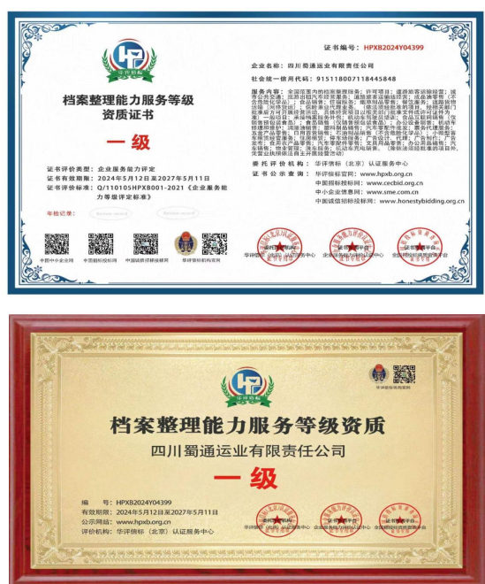 该证书的取得,不仅提升了公司的品牌形象和市场竞争力,也为公司未来的开展奠定了坚实的基础,是蜀通公司开展历程中的一项重要里程碑。蜀通公司将以此为契机,不断提升自身实力和服务水平,为客户给予更加专业、优质的档案整理服务。