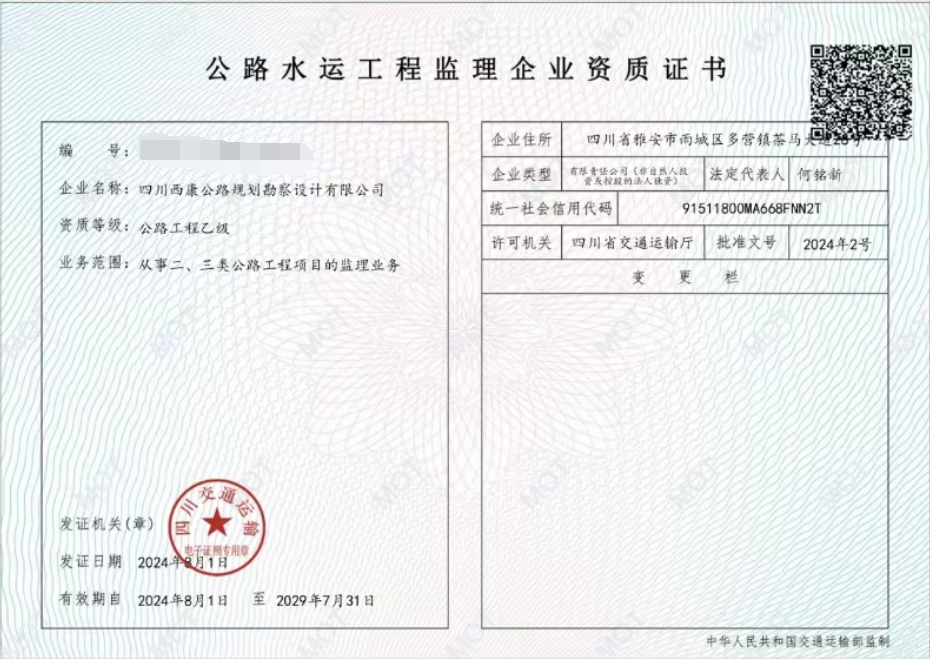 近期,经四川省交通运输厅批准,币游集团勘察设计公司成功取得公路工程监理乙级资质,该资质的成功获批,标志着我公司业务迈向新领域。