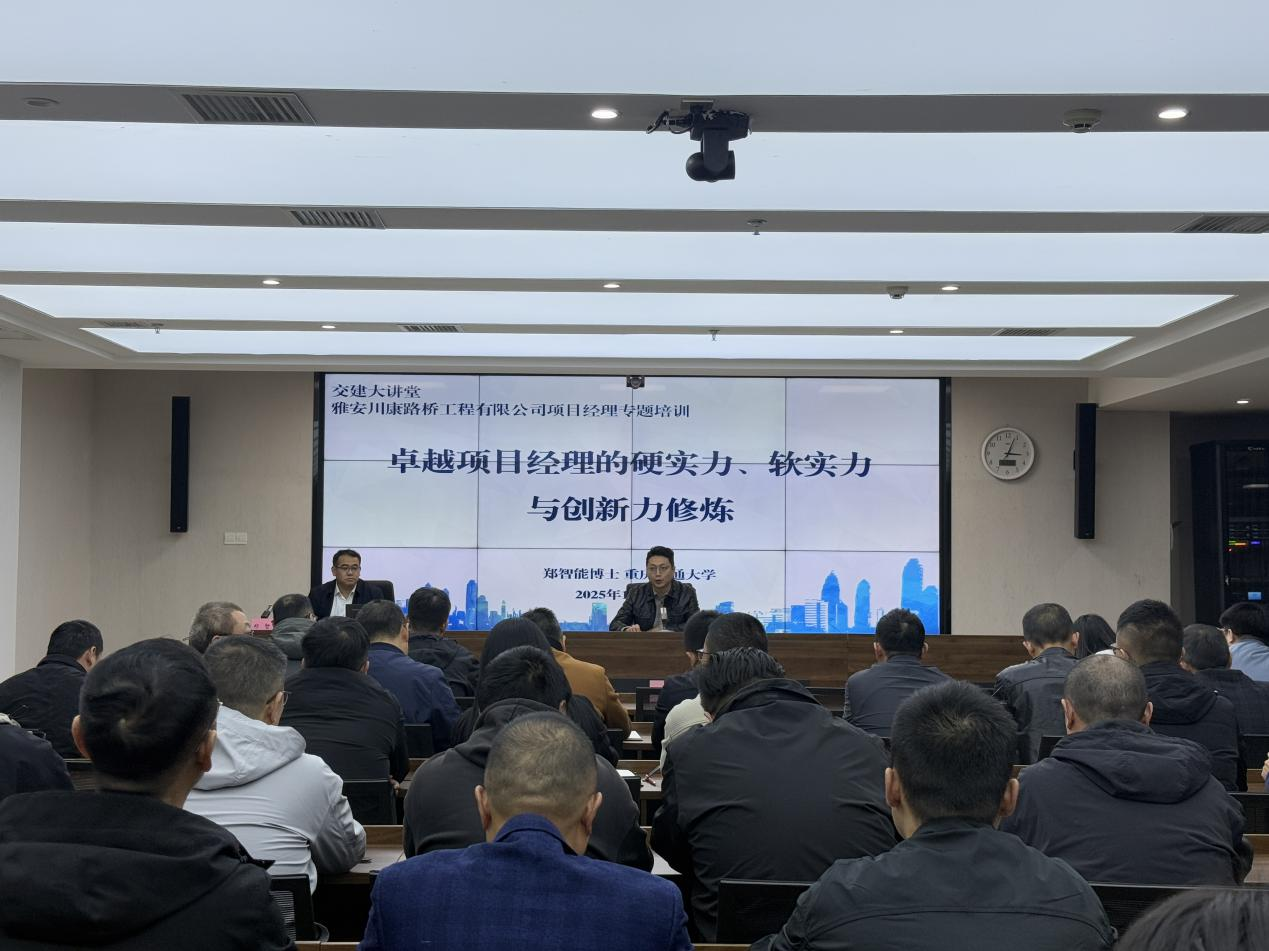 本次培训特邀重庆交大工学博士、副教授、硕士生导师郑智能老师,以“优秀项目经理的硬实力、软实力与创新力修炼”为主题,聚焦行业前沿动态与实战应用,旨在帮助项目经理拓宽管理视野、夯实核心技能,为公司转型升级和经营目标的顺利实现给予有力的人才支撑。