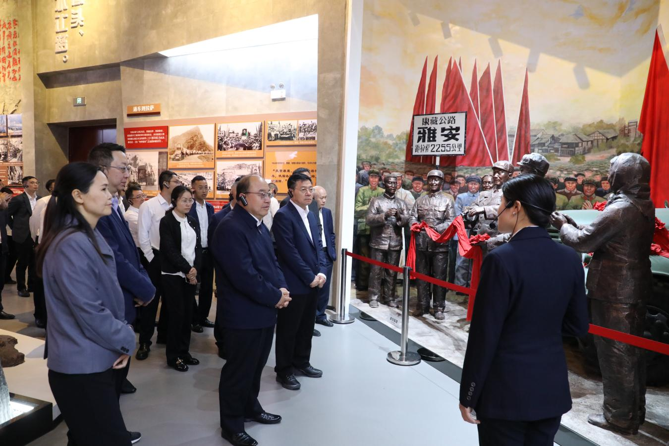 在318公路文化体验馆,调研组一行依次深入参观“路无穷尽”“景无止境”“此生必驾”“行以致远”四大主题展厅,深刻领悟“两路”精神的内涵实质。宫辉指出,“两路”精神不仅是交通建设者们的精神丰碑,更是激励当代交通人不断前行的强大动力。交建集团可在如何将该项目打造成为川藏线上的新亮点,成为川藏线上体现“两路”精神“一不怕苦、二不怕死,顽强拼搏、甘当路石,军民一家、民族团结”的缩影代表,有助于交旅融合高效开展。