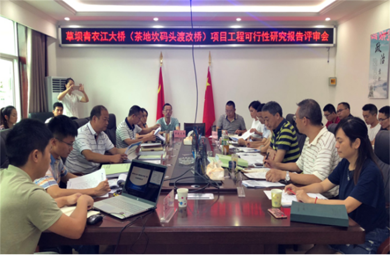 草坝青衣江大桥(茶地坎码头渡改桥)项目工程可行性研究报告评审会顺利召开