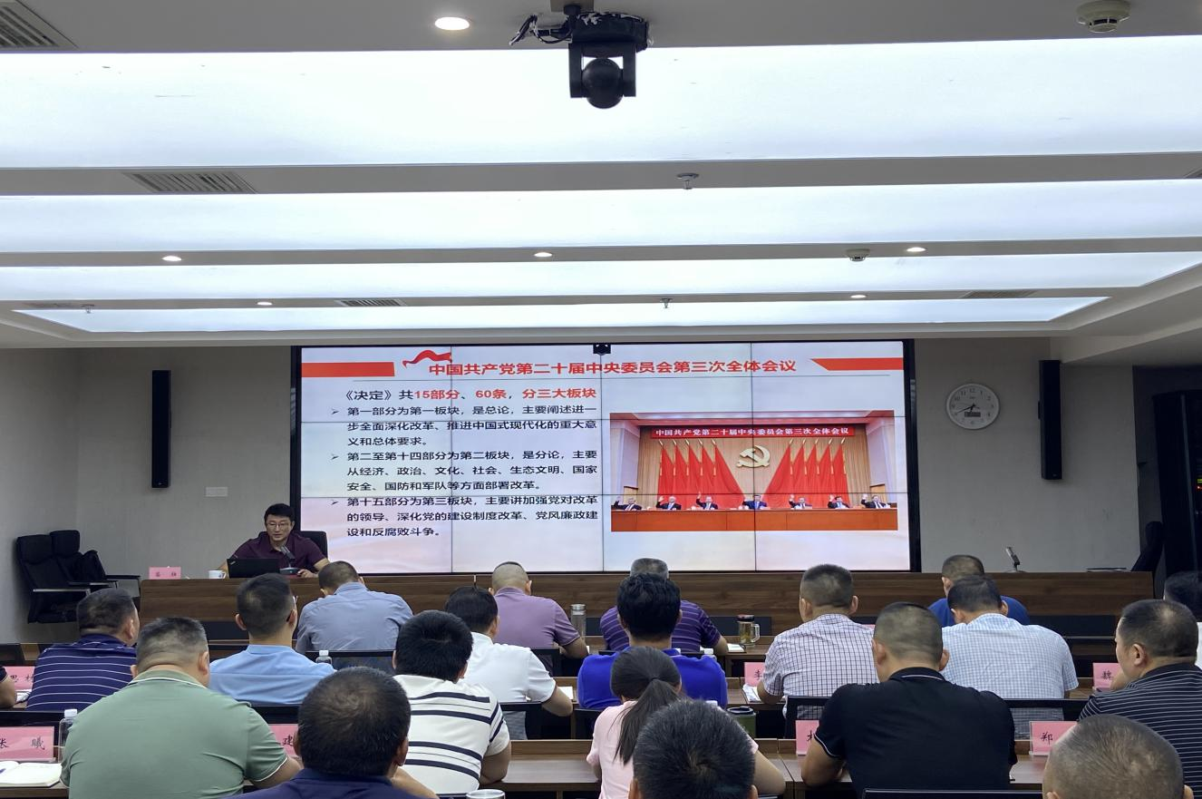 8月27日,雅安市交建集团邀请中共四川省委宣讲团成员、西南财经大学经济学院教授、博士生导师苗壮集中宣讲党的二十届三中全会精神。