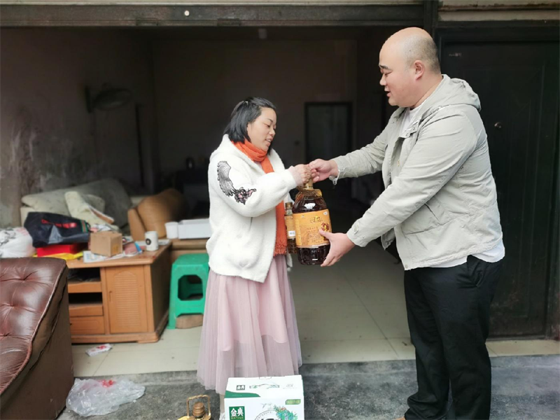 10月18日下午,币游集团运通贸易有限公司党员干部在雨城区青江街道石马社区工作人员的带领下,前往“一对一”帮扶对象黄非女士家中,为她送去了大米、食用油、牛奶等慰问品。