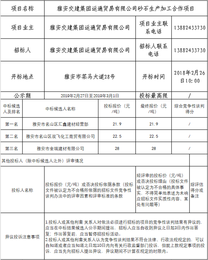 币游集团运通贸易有限公司砂石生产加工合作项目竞争性谈判结果公示