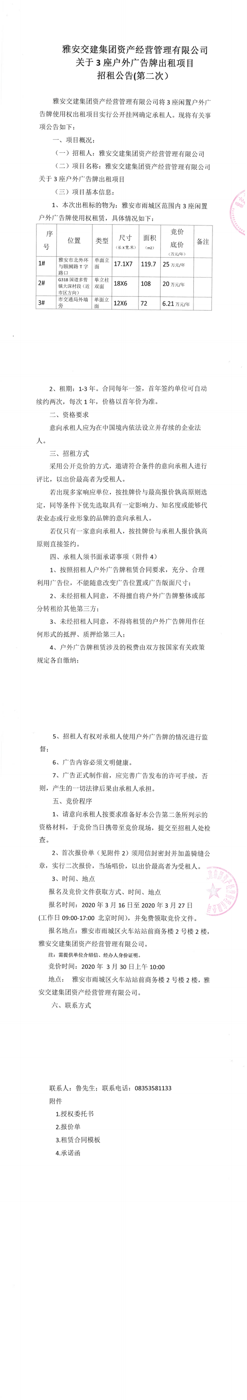 币游集团资产经营管理有限公司关于3座户外广告牌出租项目招租公告(第二次)