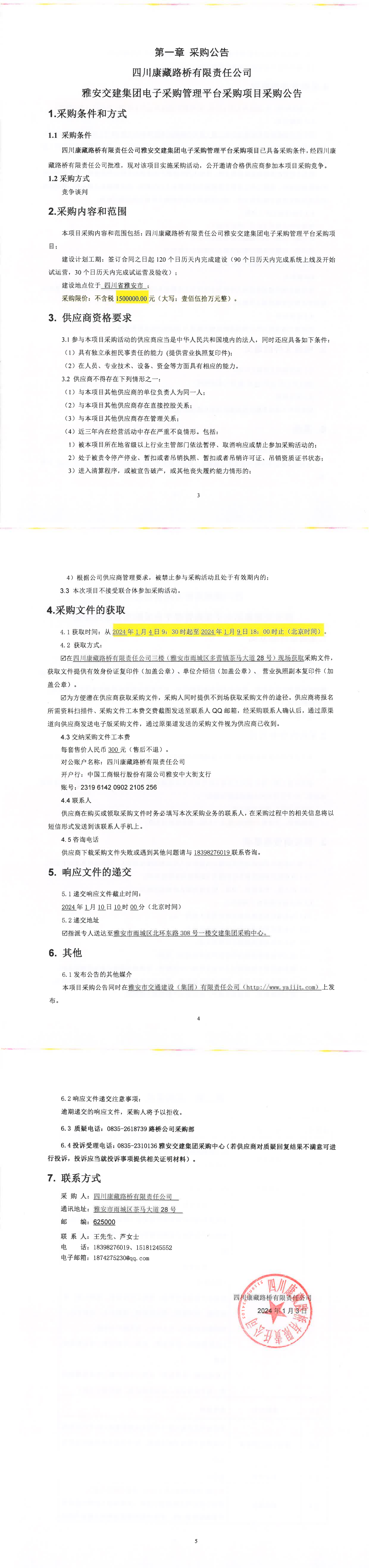 四川康藏路桥有限责任公司币游集团电子采购管理平台采购项目采购公告