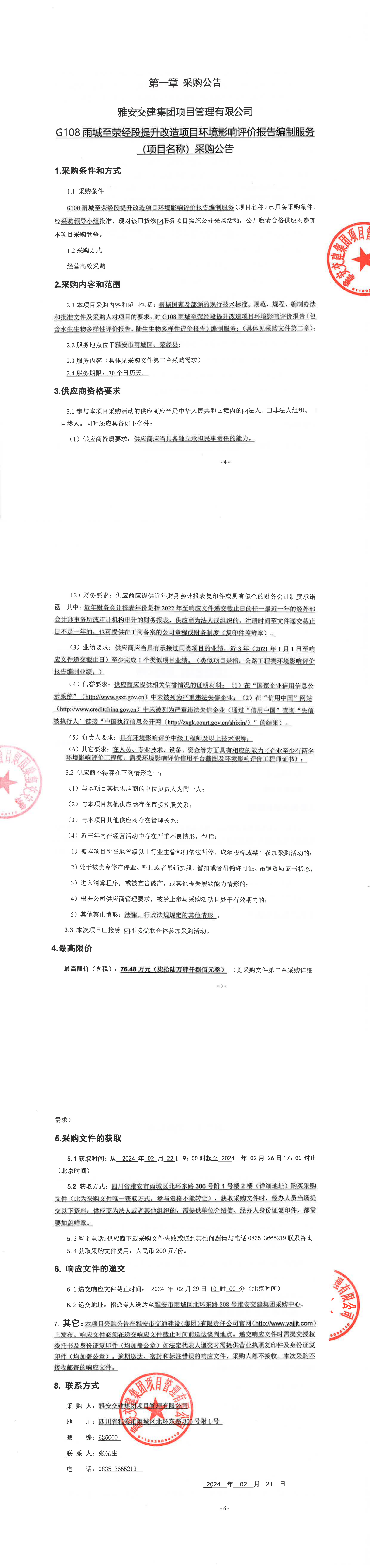 币游集团项目管理有限公司G108雨城至荥经段提升改造项目环境影响评价报告编制服务(项目名称)采购公告