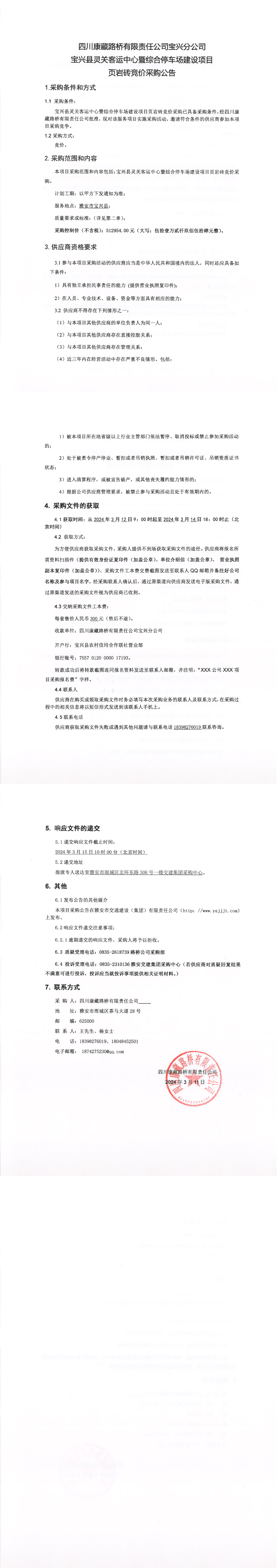 四川康藏路桥有限责任公司宝兴县灵关客运中心暨综合停车场建设项目页岩砖竞价采购公告