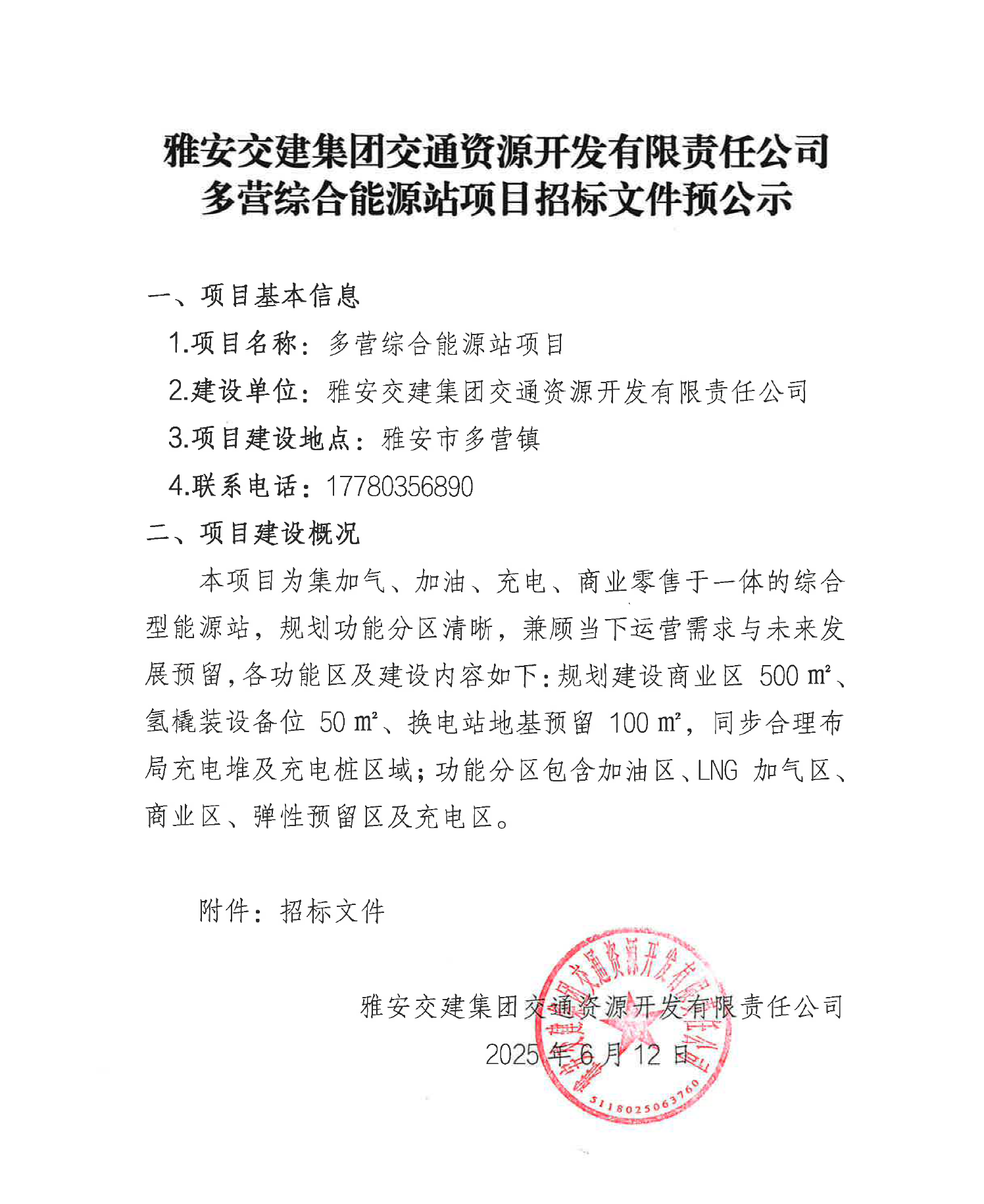 币游集团交通资源开发有限责任公司多营综合能源站项目招标文件预公示