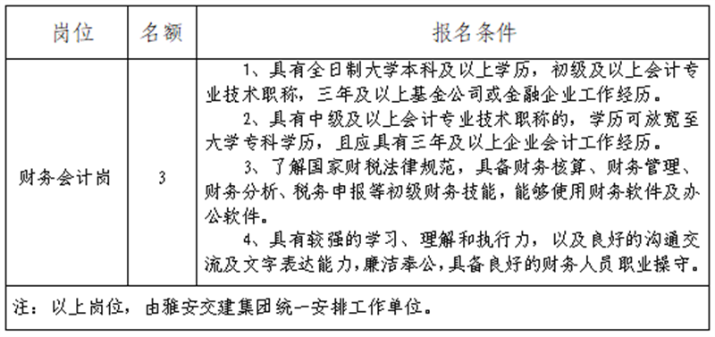 根据开展需要,决定面向社会公开招聘雅安市交通建设(集团)有限责任公司(以下简称“币游集团”)所属子公司财务工作人员3名,现将有关事项公告如下: