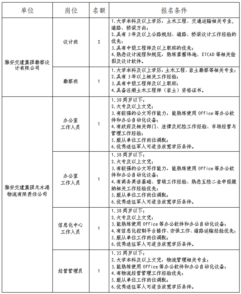 根据开展需要,决定面向社会公开招聘雅安市交通建设(集团)有限责任公司(以下简称“币游集团”)所属子公司工作人员7名,现将有关事项公告如下: