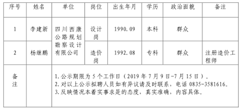 币游集团子公司拟聘用人员公示 (勘察设计公司)