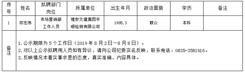 对以下拟聘用人员予以公示:
