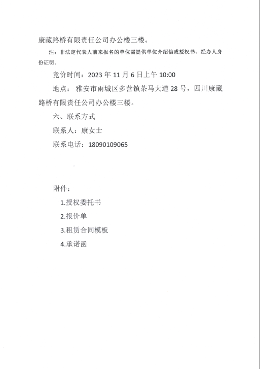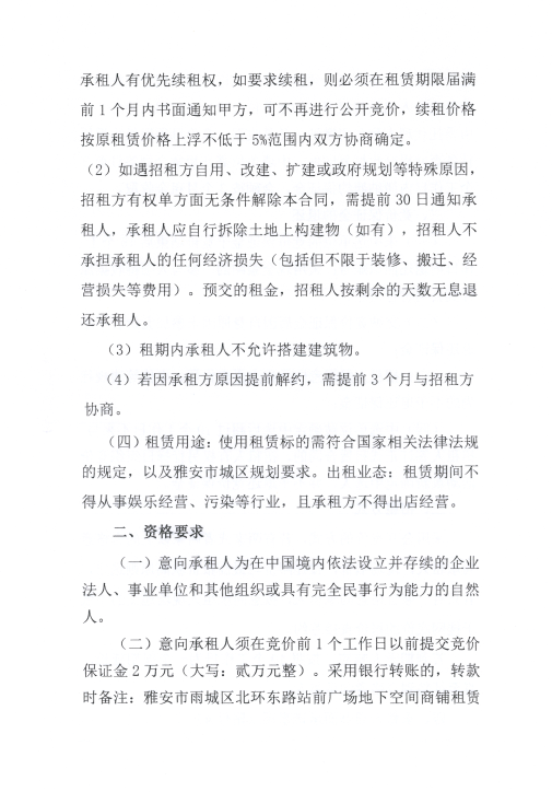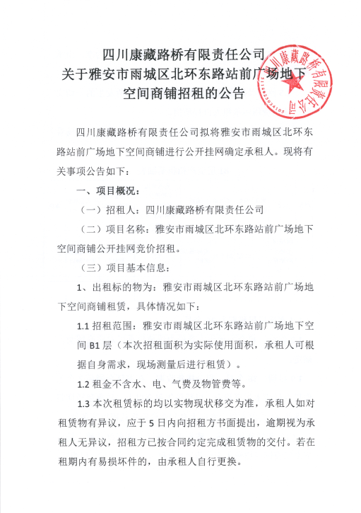 四川康藏路桥有限责任公司关于雅安市雨城区北环东路站前广场地下空间商铺招租的公告