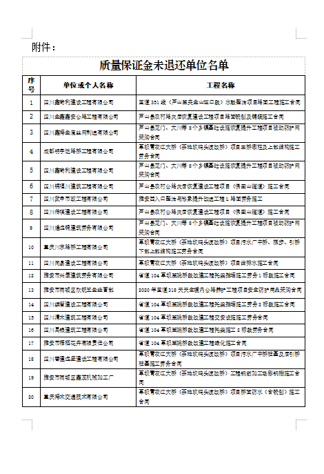 四川康藏路桥有限责任公司关于清退质量保证金的公告
