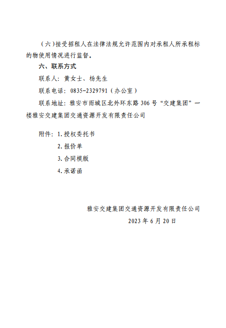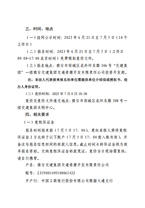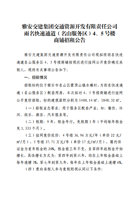 币游集团交通资源开发有限责任公司雨名快速通道(名山服务区)4、5号楼招租公告附件