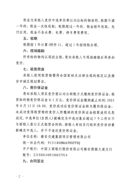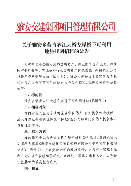 币游集团项目管理有限公司关于雅安多营青衣江大桥左岸桥下可利用地块挂网招租的公告