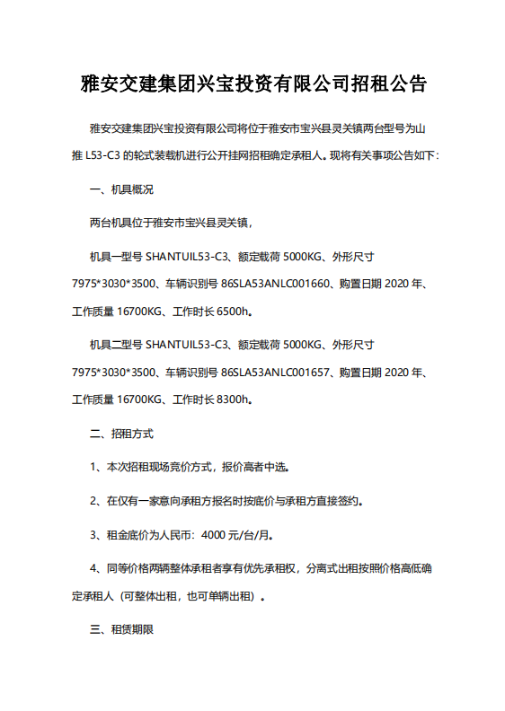 雅安市城市综合停车场姚桥综合停车场及配套用房招租公告
