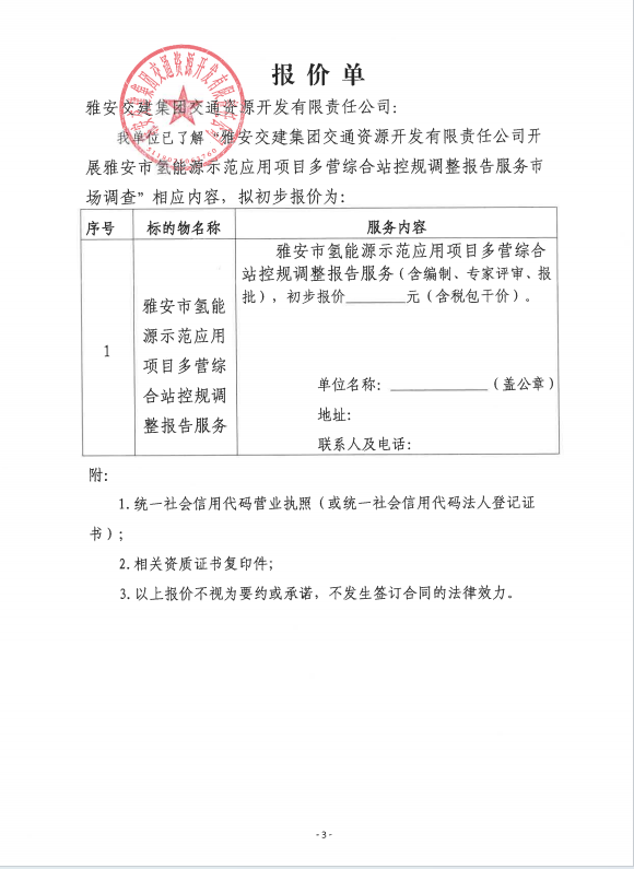 币游集团交通资源开发有限责任公司雅安市氢能源示范应用项目多营综合站控规调整报告服务市场调查公告