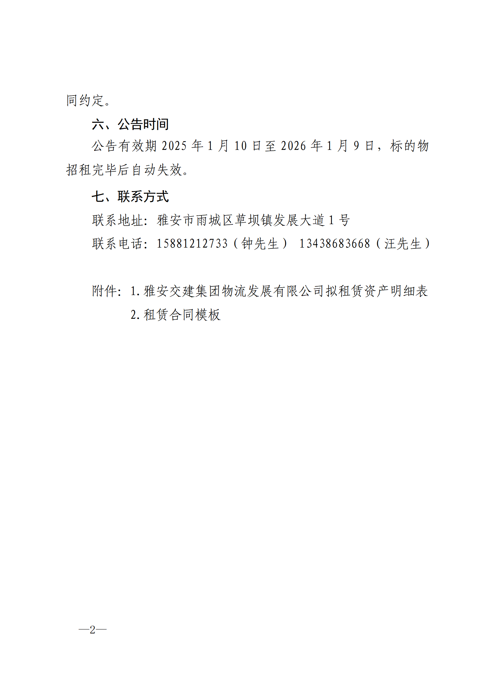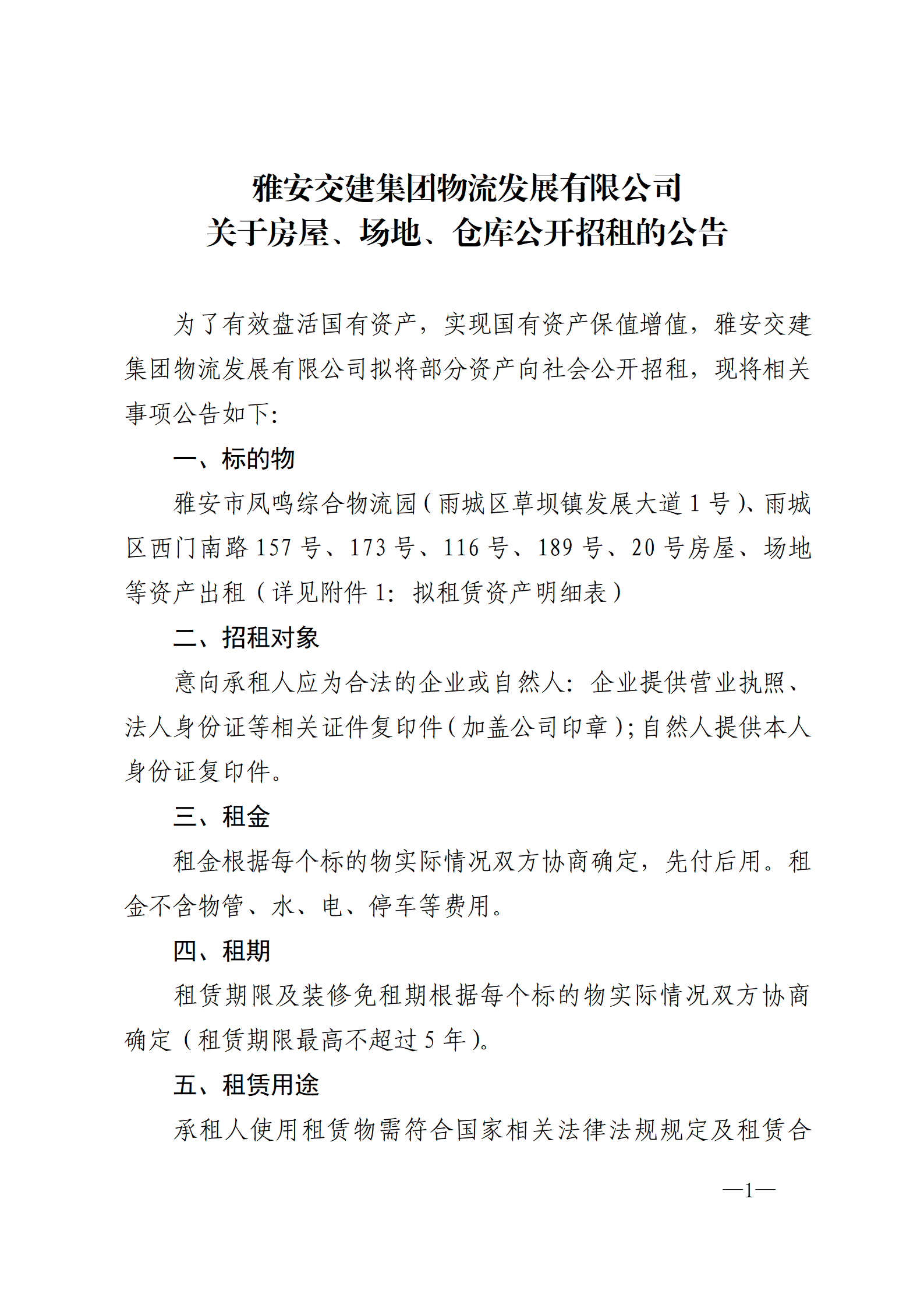 币游集团物流开展有限公司 关于房屋、场地、仓库公开招租的公告