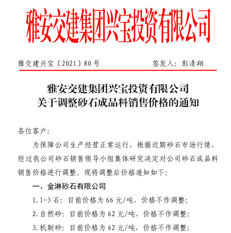 币游集团云石公司关于调整成品料销售价格的通知(2021.11.4)