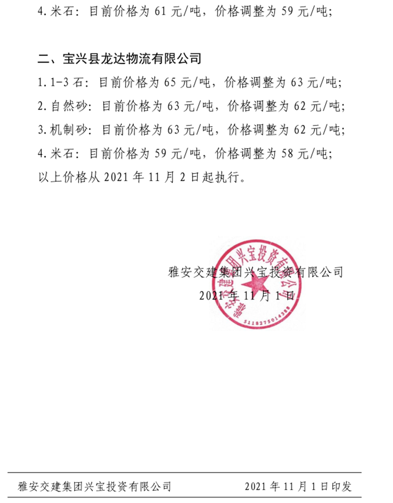 币游集团兴宝公司关于调整成品料销售价格的通知(2021.11.2)