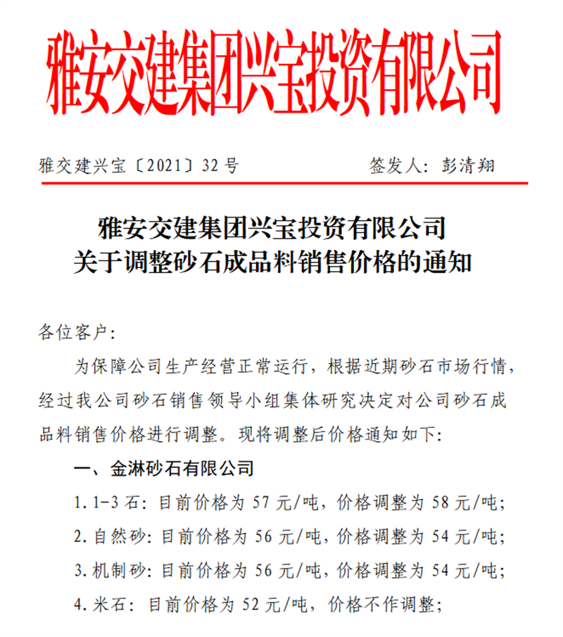 币游集团兴宝公司砂石骨料销售价格情况表(2021.5.22)