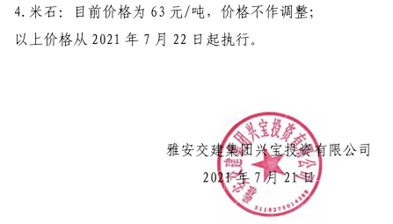 币游集团兴宝公司砂石骨料销售价格情况表(2021.7.22)