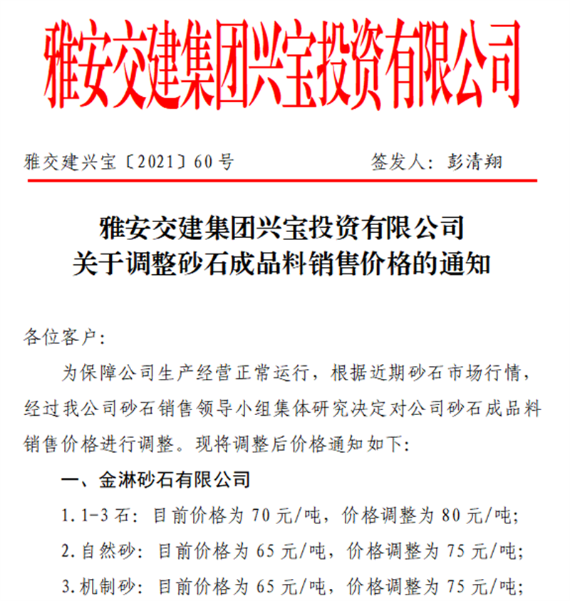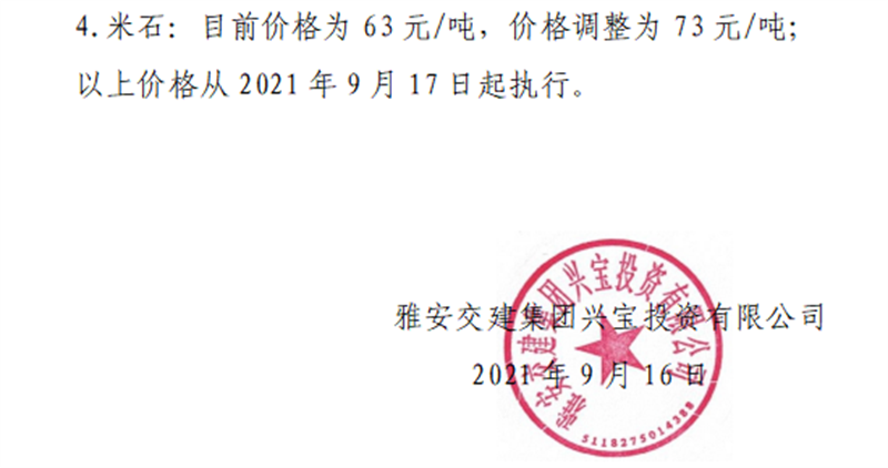 币游集团云石公司关于调整成品料销售价格的通知(2021.9.13)