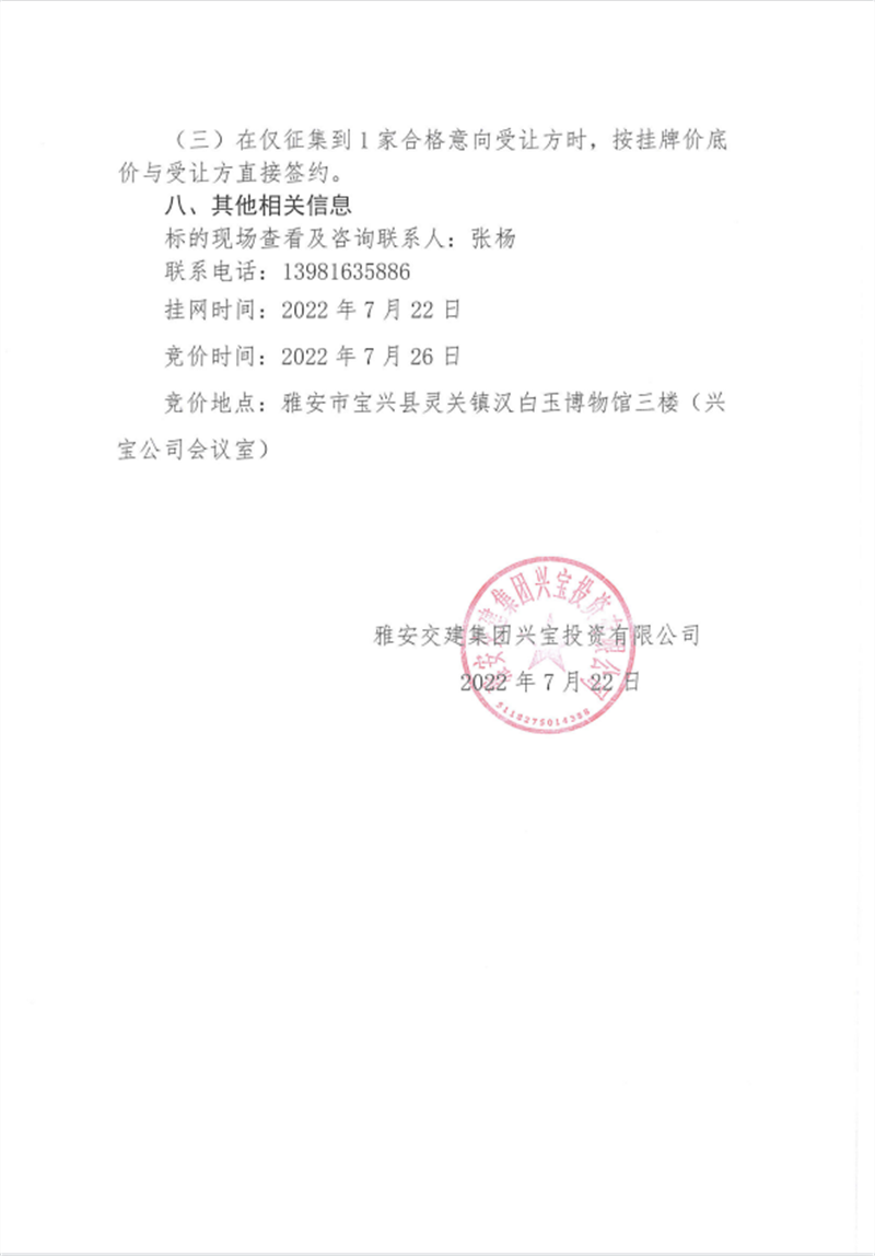 兴宝公司宝兴县灵关镇代碑寺土地整理项目10万吨可利用弃渣竞价销售挂网公告挂网公告7.22(5万吨)