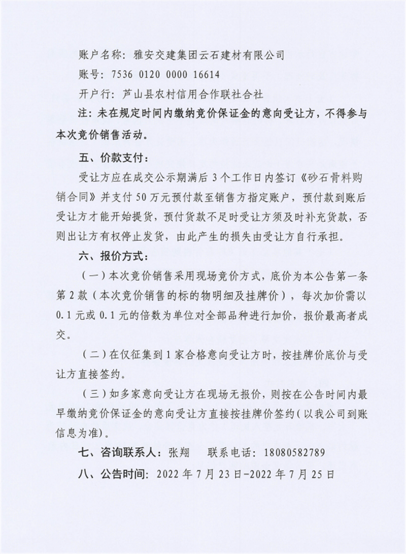 币游集团兴宝投资有限公司宝兴县灵关镇代碑寺土地整理项目100万吨可利用弃渣竞价销售公告(2022.7.25)